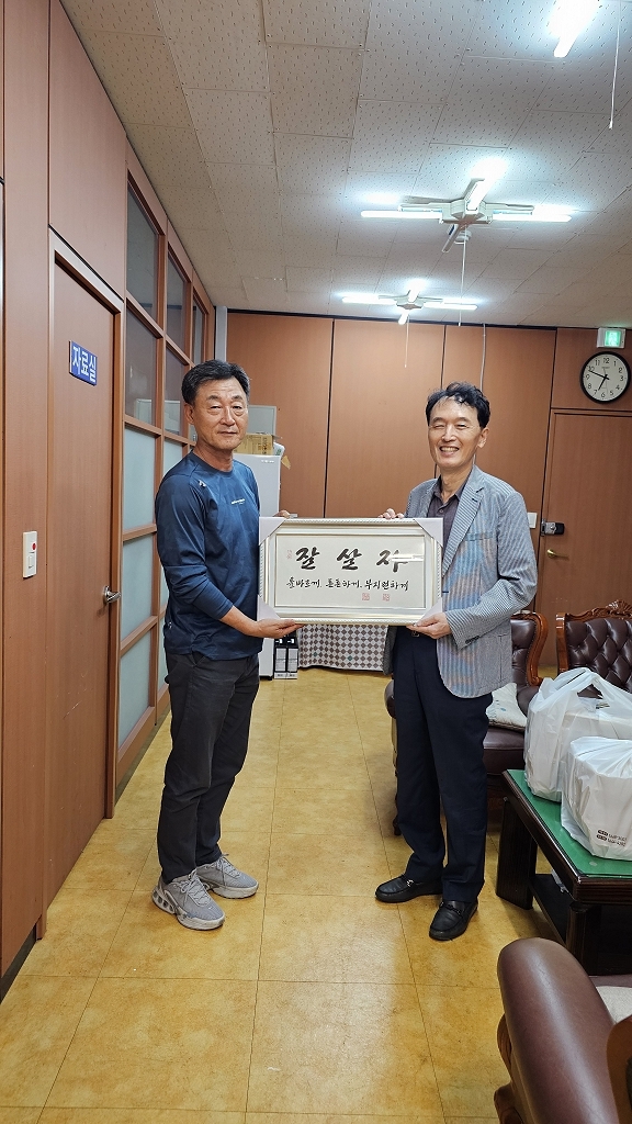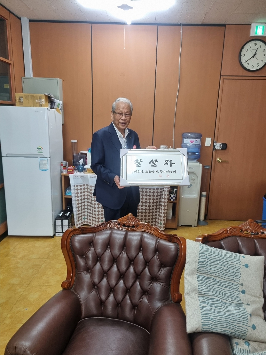 잘살자란 글씨가 멋지게 씌여진 교훈 액자였다. 유명한 서예가한테 사비를 부담하면서